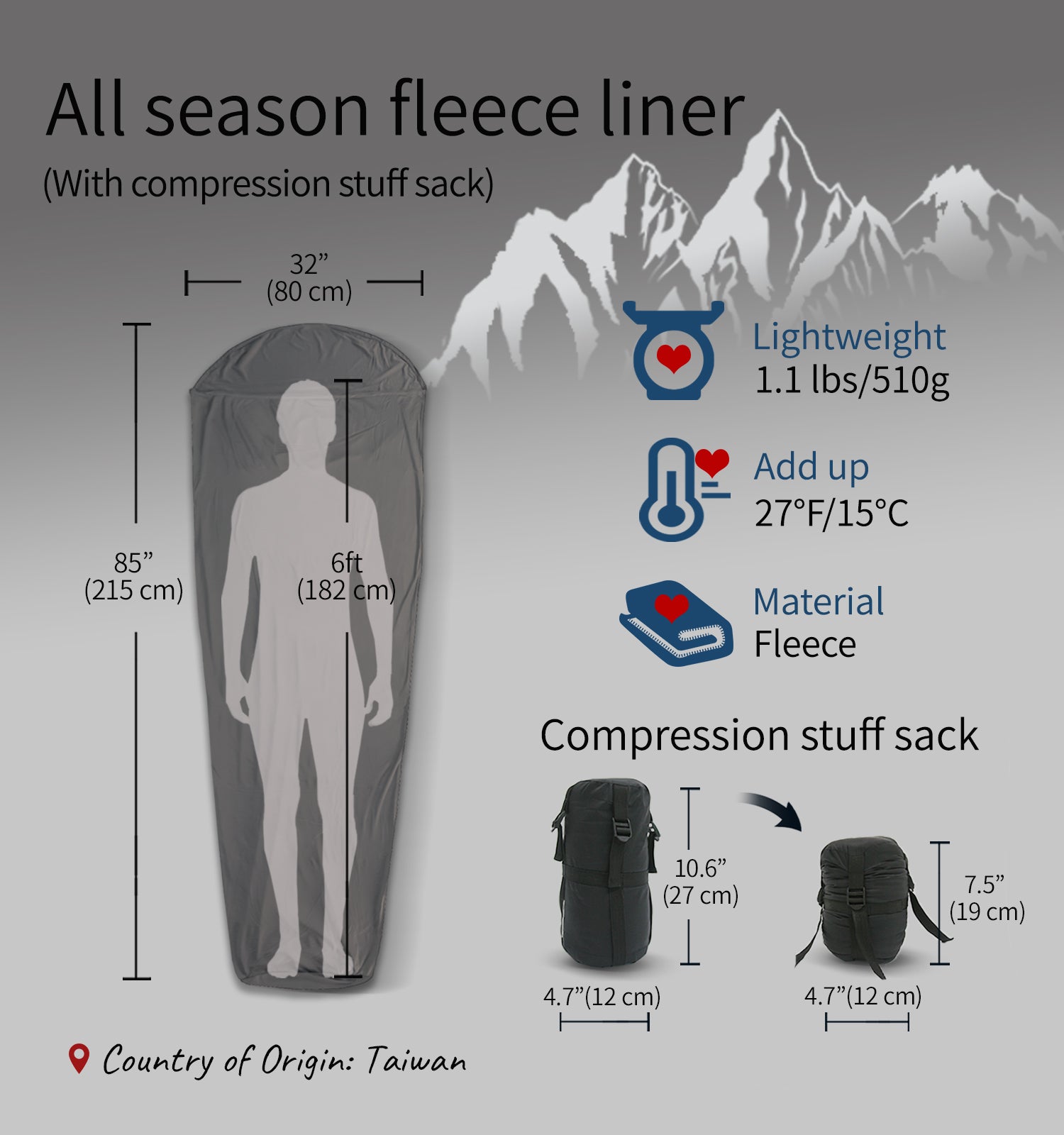 [E629] All Season Sleeping Bag Liner Adds Up to 27°F / 15°C (Fleece)